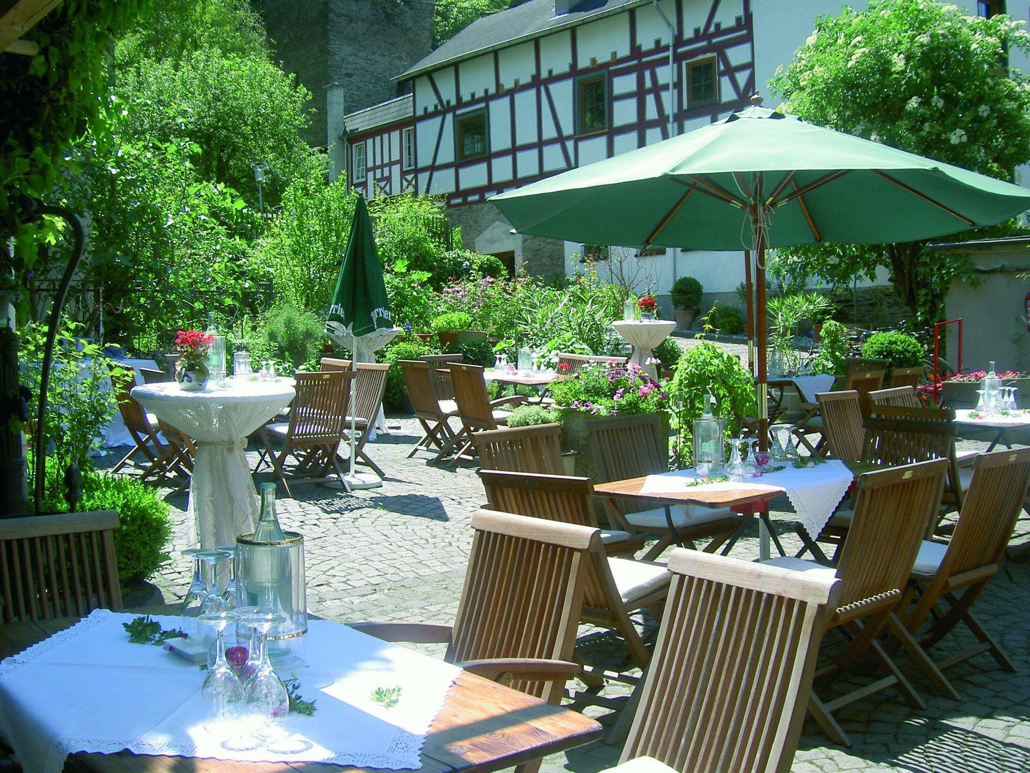 Speisen Sie in einem historischen Fachwerkhaus im Herzen von Braubach.
