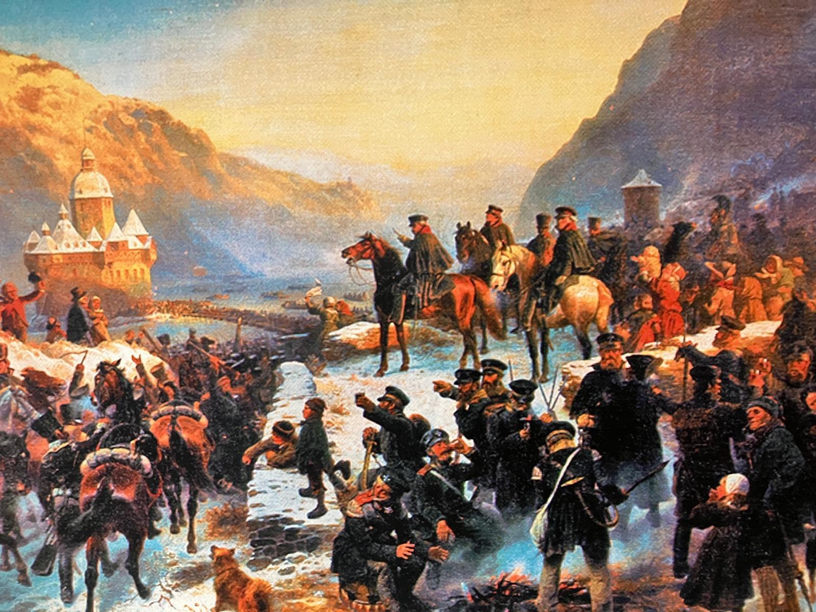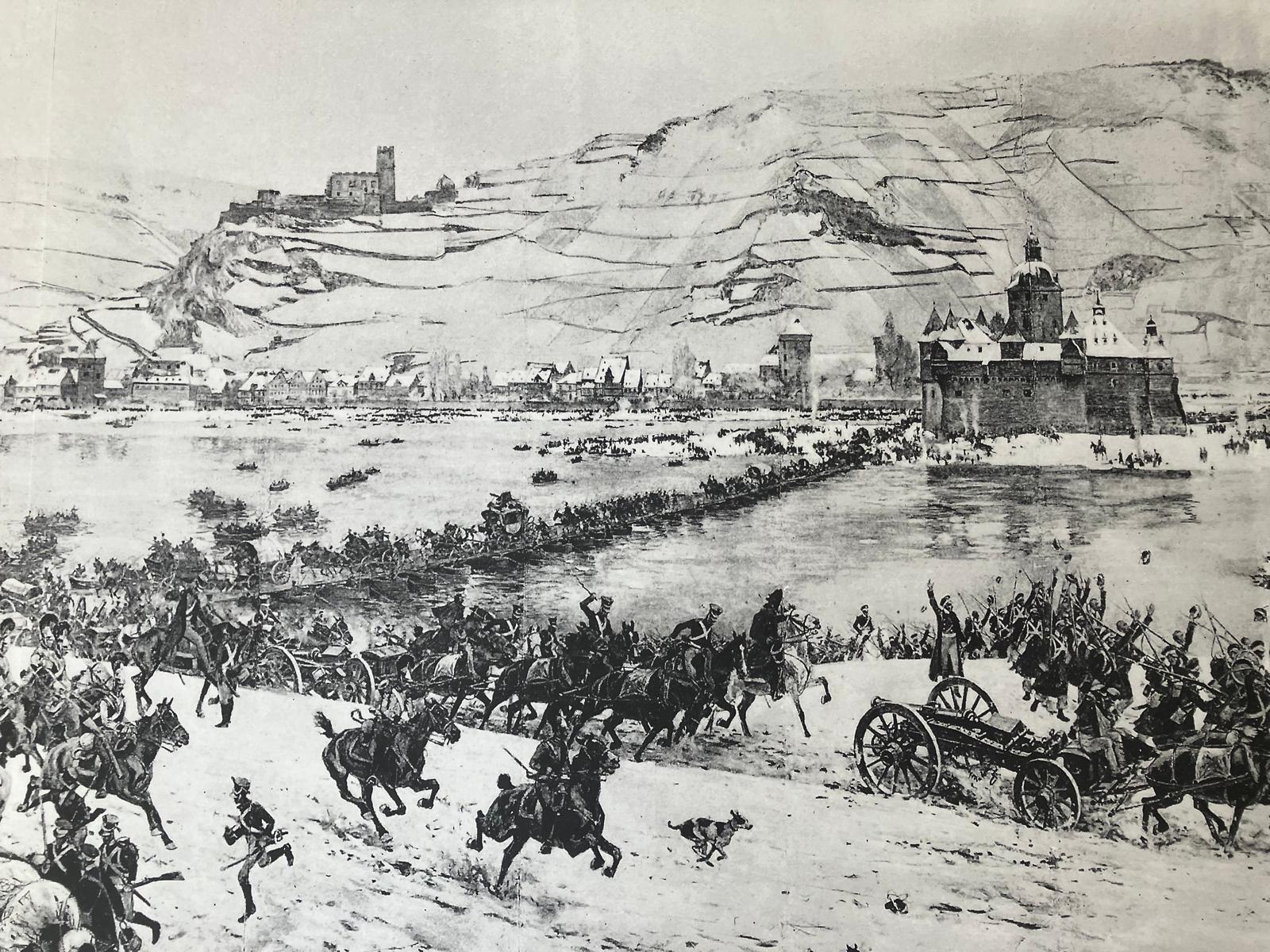 The main theme of the museum is the crossing of the Rhine by the Silesian Army, which, after the Battle of Leipzig in the first week of the New Year 1814, crossed the Rhine on a Russian pontoon bridge at the nearby Pfalz under the Prussian field marshal Blücher.