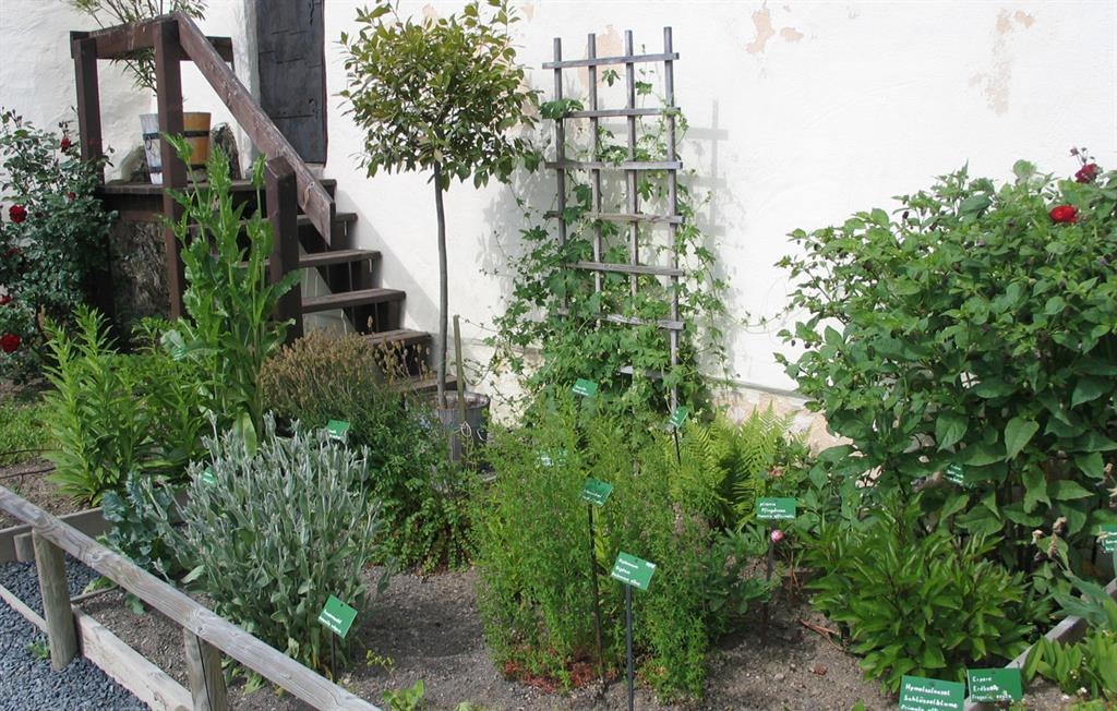 There is a botanical garden of the Middle Ages at Marksburg Castle, which is part of the World Heritage Garden Route in the Upper Middle Rhine Valley. The approximately 500 square meter demonstration garden is based on medieval garden culture and stretches along the walls of the Zwinger complex. Created in 1967, the garden displays around 150 different plant species that were cultivated and used in the Middle Ages. These include supposed witch and magic plants as well as medicinal and aromatic plants. Signs provide information about the old names, the Latin technical terms and today's names. Access is only possible as part of a guided tour.