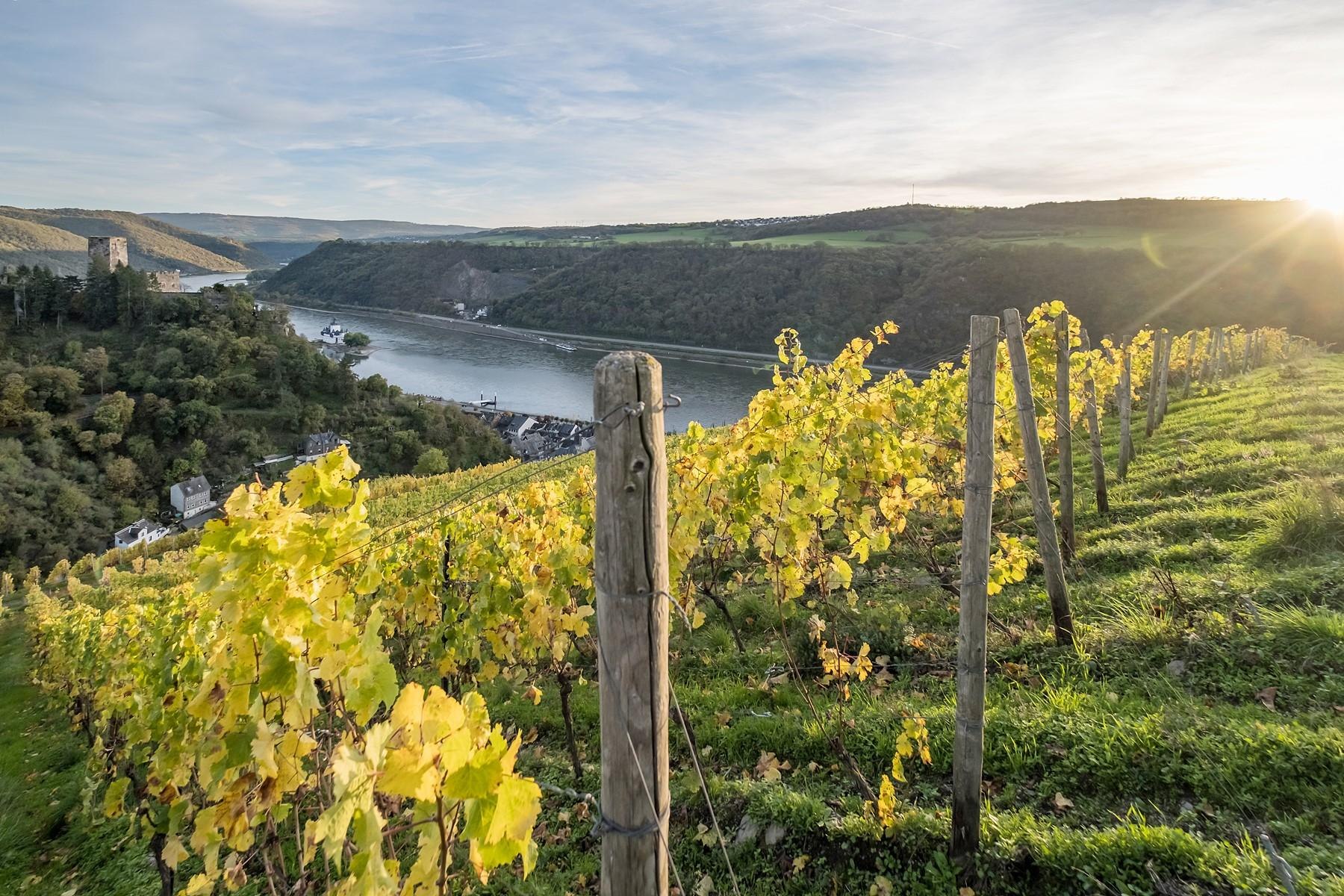 Surrounded by vineyards, the castle hotel is located above Kaub.