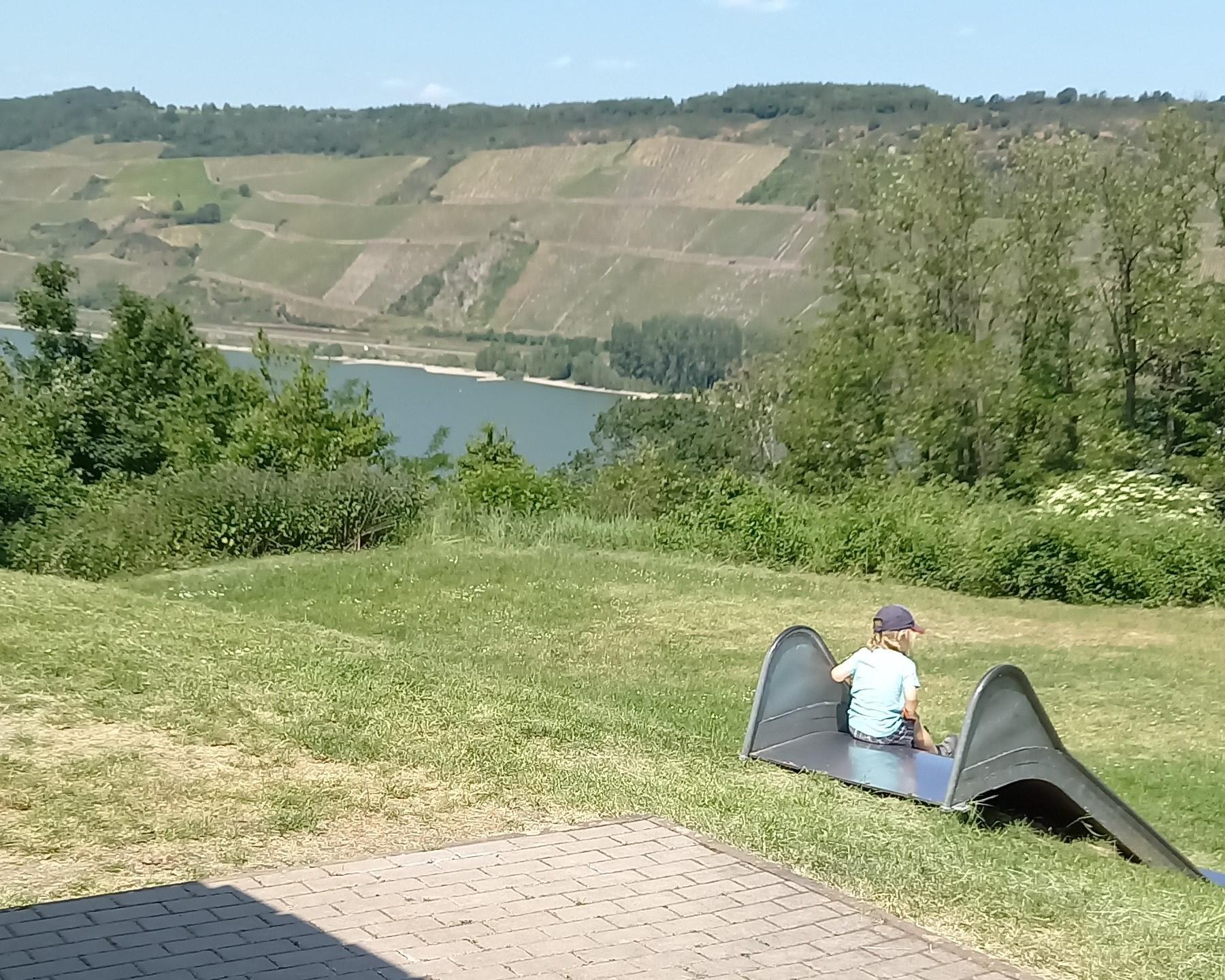 In front of the hut, there is a large meadow with a few play equipment and a wonderful view of the Rhine.